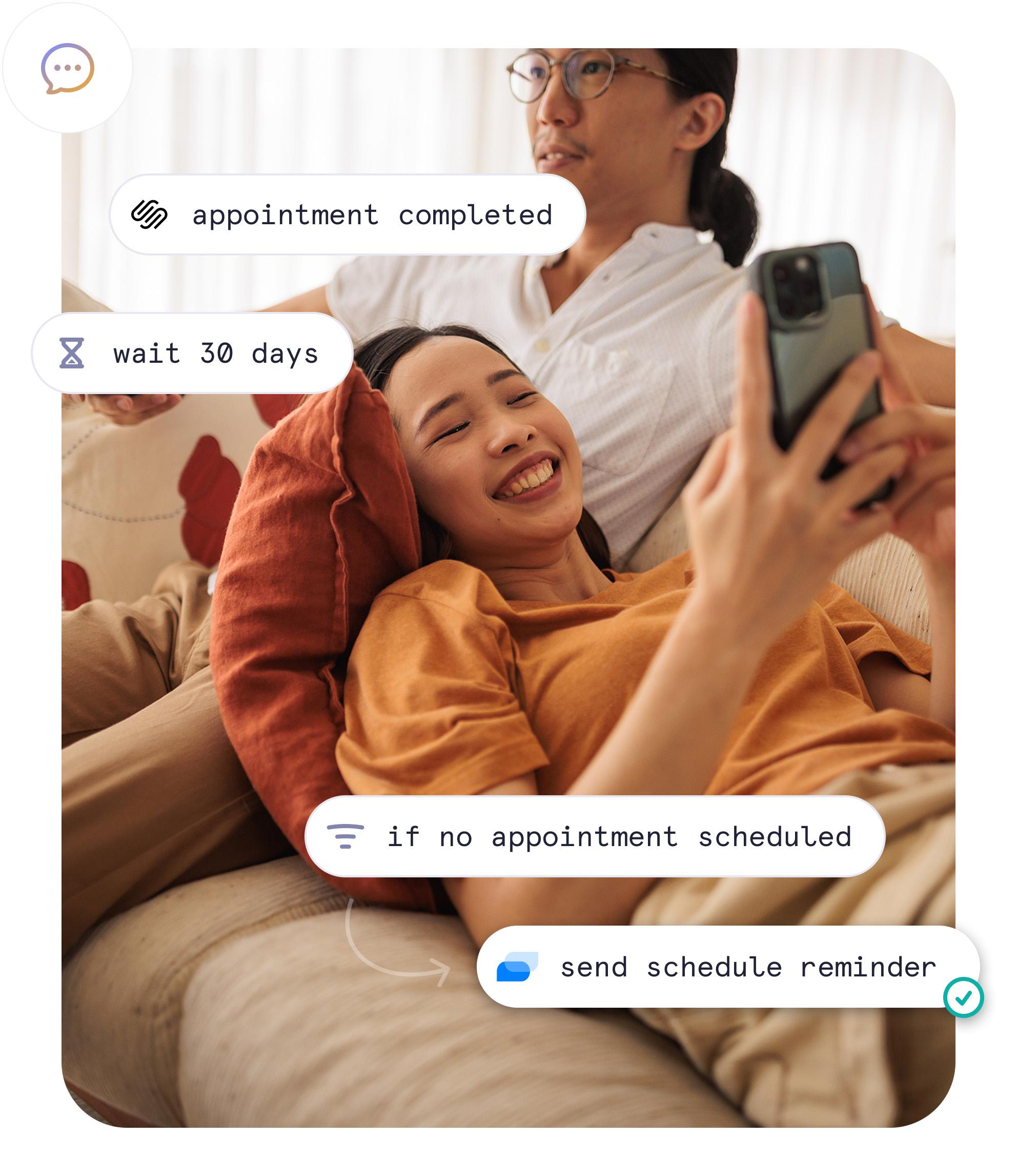 Send appointment reminders and nudge patients to reschedule if their time no longer works.